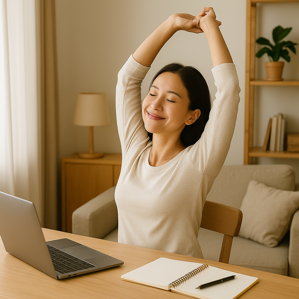 앉아서 오래 일하면 혈액순환이 둔해지고 근육 뭉침이 생기는데, 간단한 스트레칭만 해도 피로감이 확 줄어듭니다.